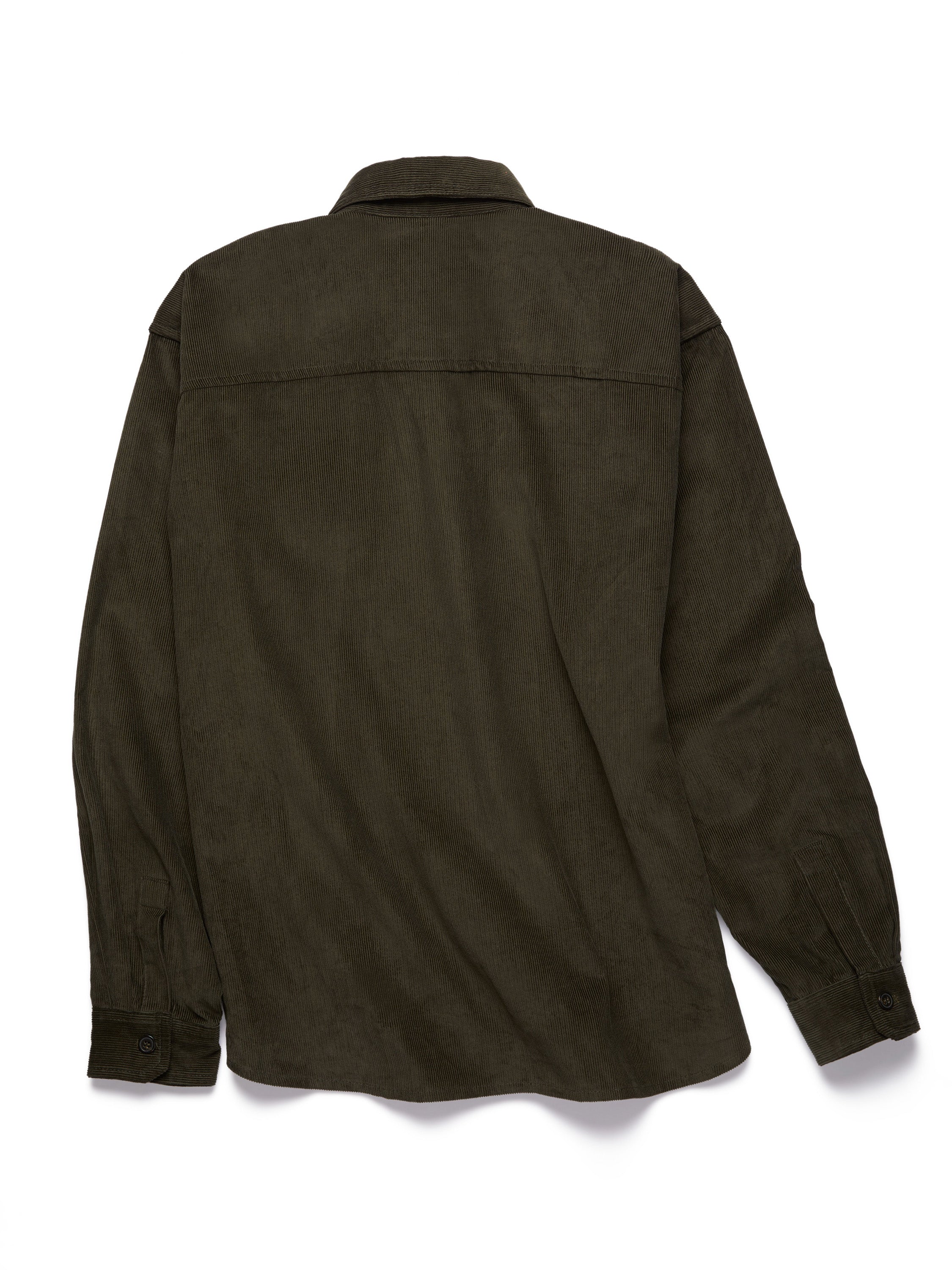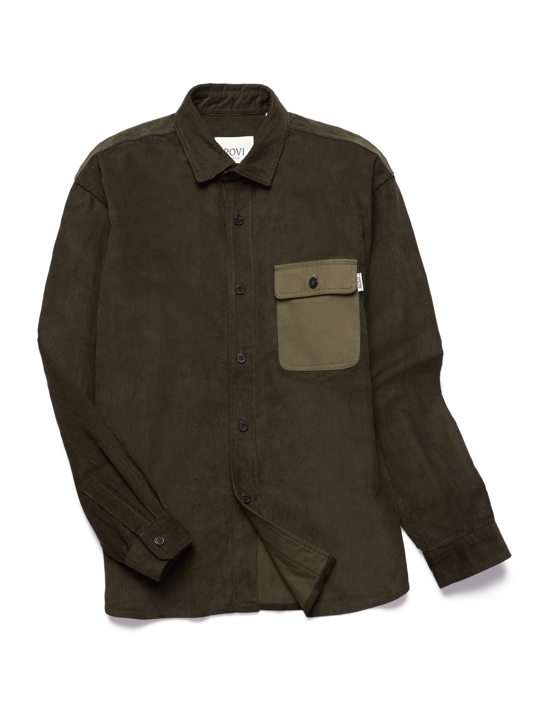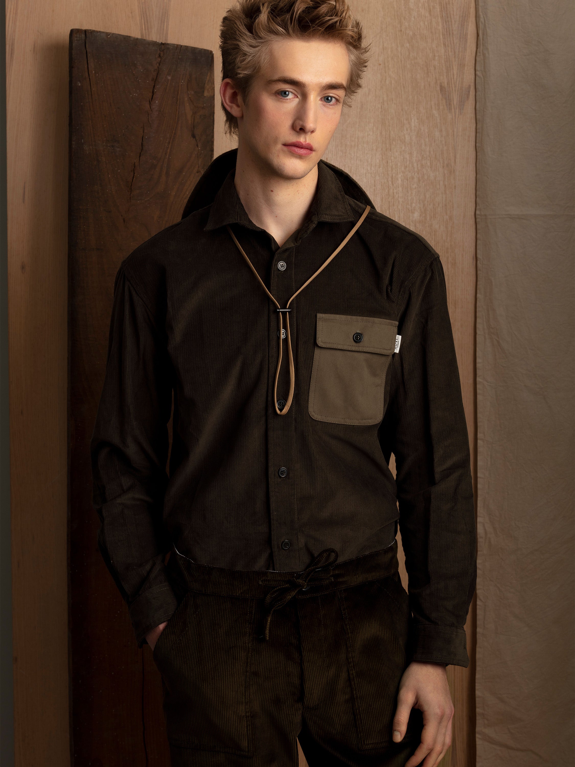 This Garden Shirt is crafted from soft olive cotton velvet corduroy, offering a tactile richness and understated elegance. A contrasting patch pocket in cotton twill adds subtle texture and visual interest. Designed for relaxed layering and timeless wear, it reflects thoughtful craftsmanship and natural inspiration.