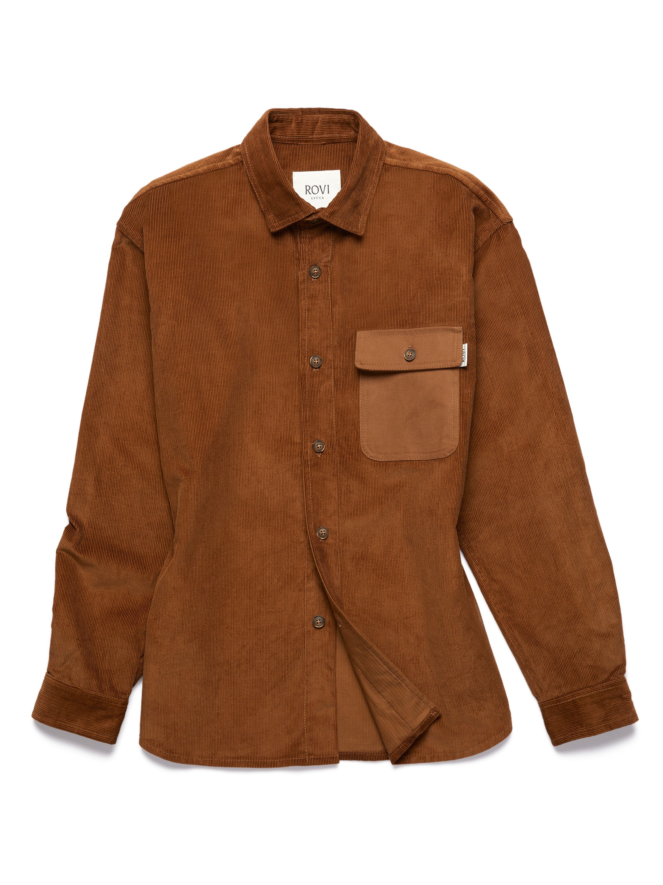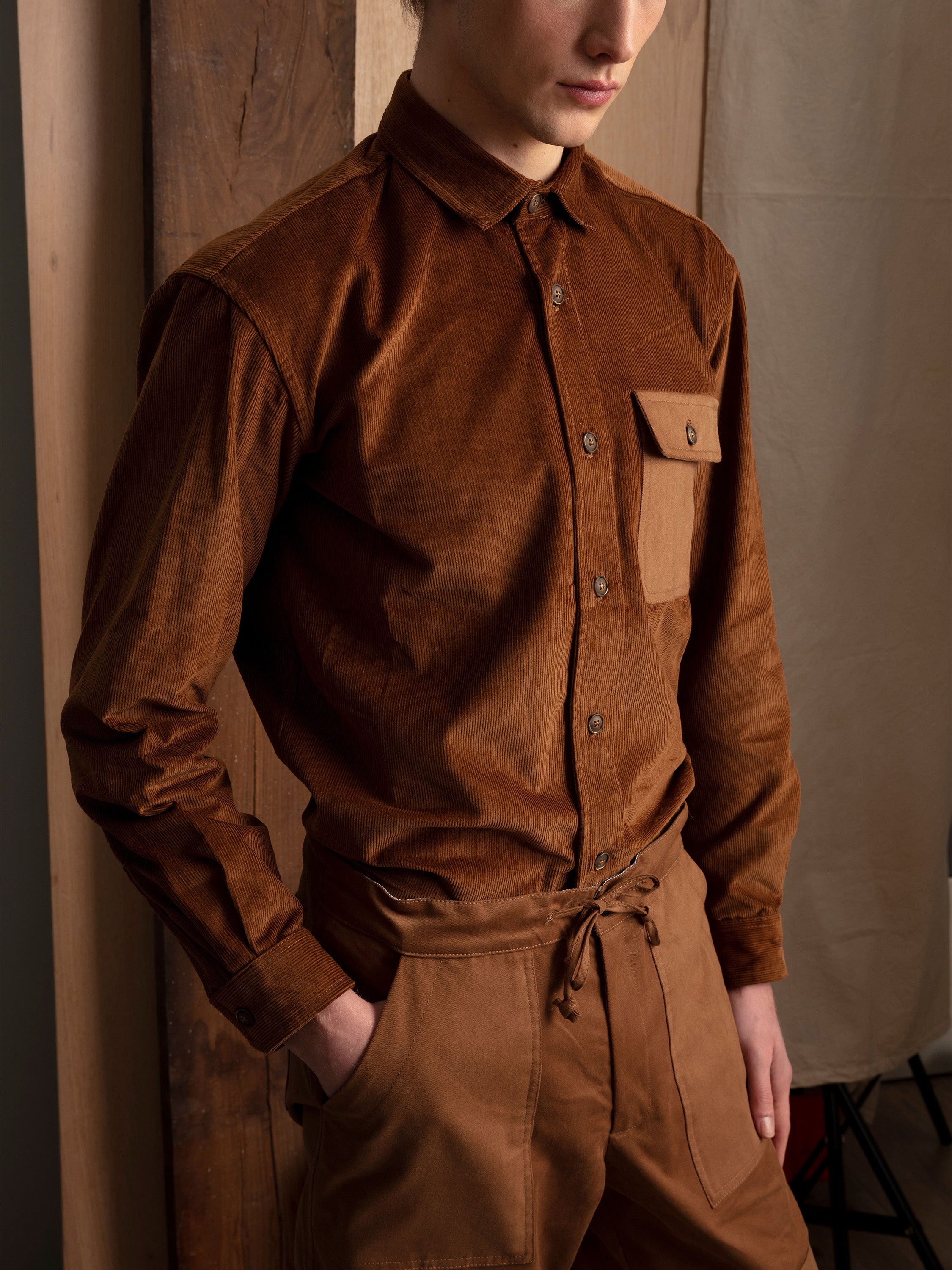 Garden Shirt in Tan Cotton Velvet Corduroy with Cotton Twill Pocket
